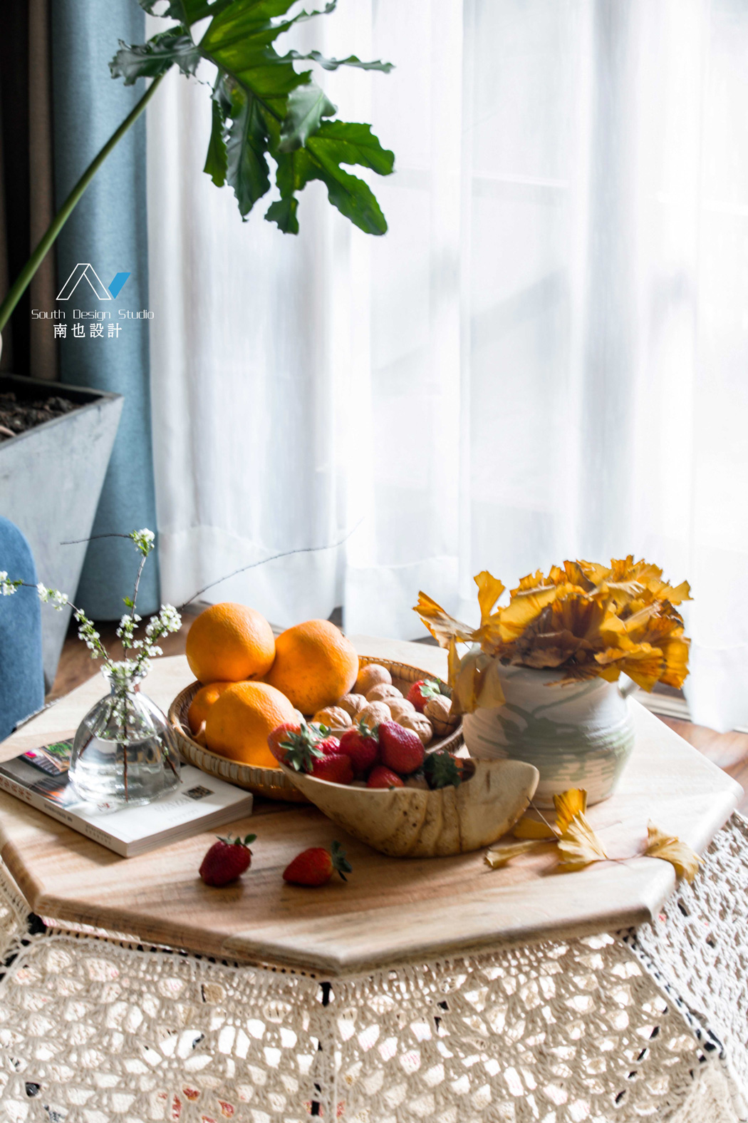 编织的茶几是业主网购的,一眼就看上了,在客厅里很是亮眼。唯一的缺陷就是框架的棱角容易磕人,家里有小朋友的最好不要用棱角多的家具。