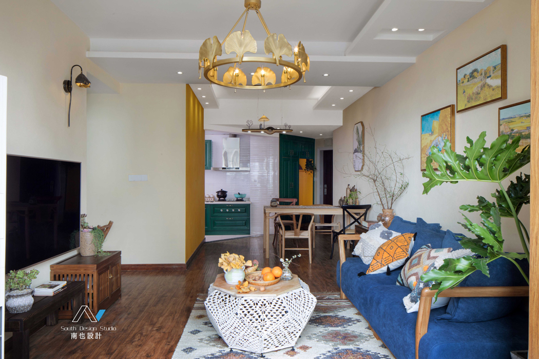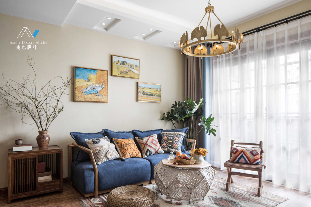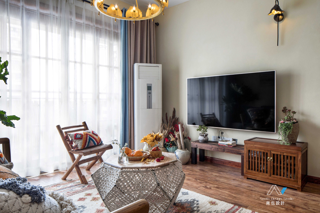 客厅中所有的家具都不是成套,包括电视柜和装饰边柜,各种模样的家具在空间中丝毫没有违和感。混搭的风格最难掌握的就是混的火候,一不注意就容易变成乱搭。
