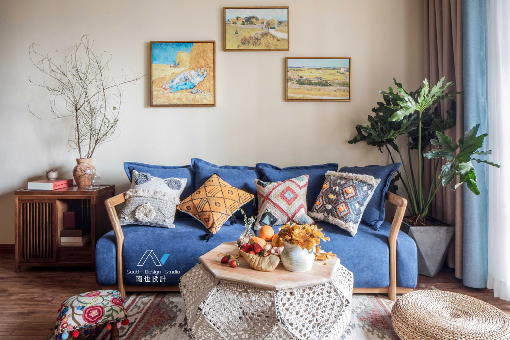 沙发背景墙上梵高的麦田买来是一套六幅大小不一的画,结果发现尺寸太大了,于是把另外三幅挂在了龙哥家。这样的“关联”,让我们觉得是一个美丽的意外。