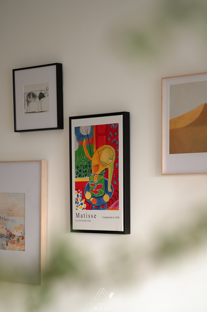 墙面每一幅精挑细选的挂画,让空间多了一份艺术感,从不用的角度可以欣赏到不同的画,误以为走进一间小型的画廊。以后旅行中的影像生活的点滴也可以随意挂在墙面。
