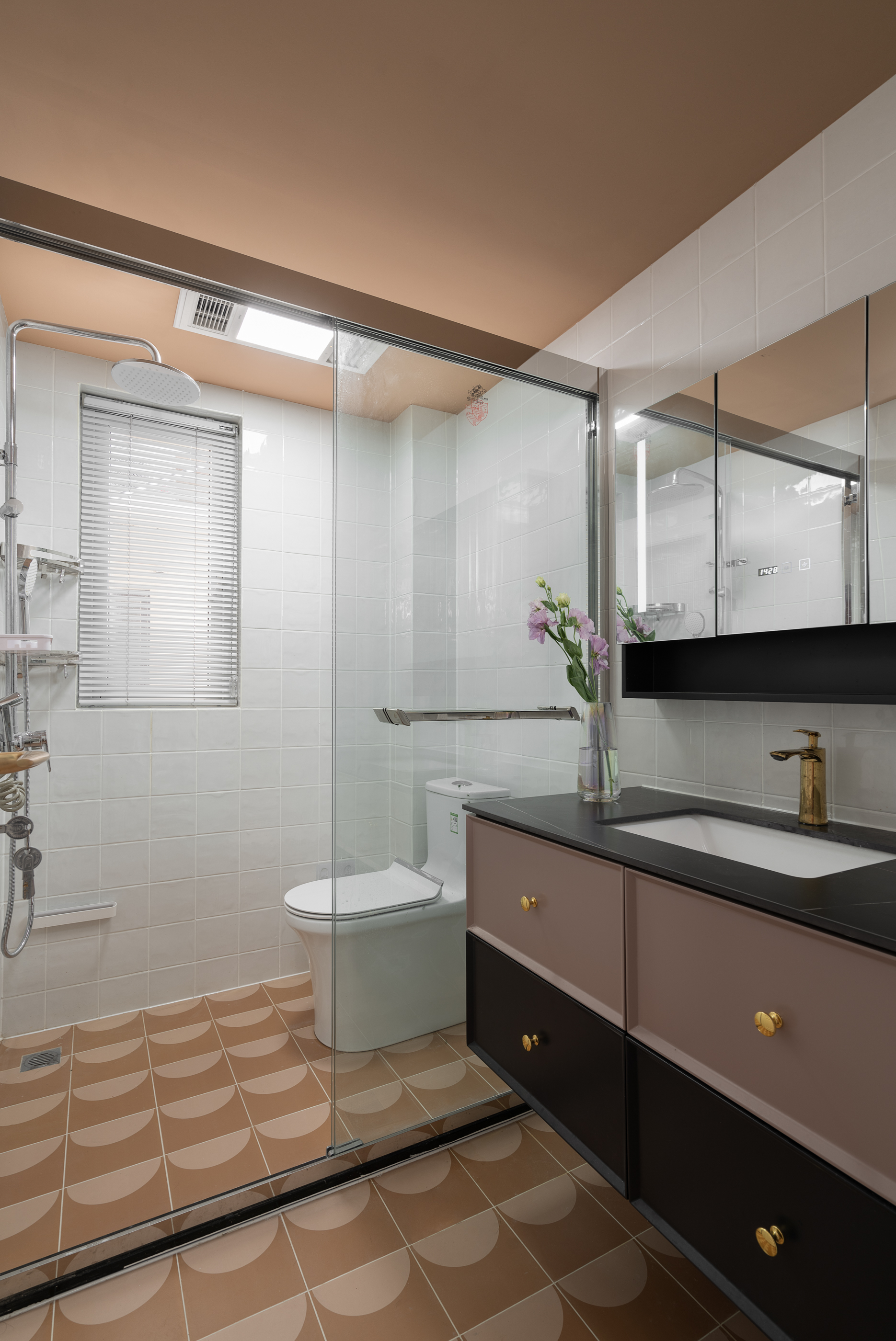 小方砖,半弧面,整齐的排列,生动有趣。即便紧凑的客卫空间也能有小心思。