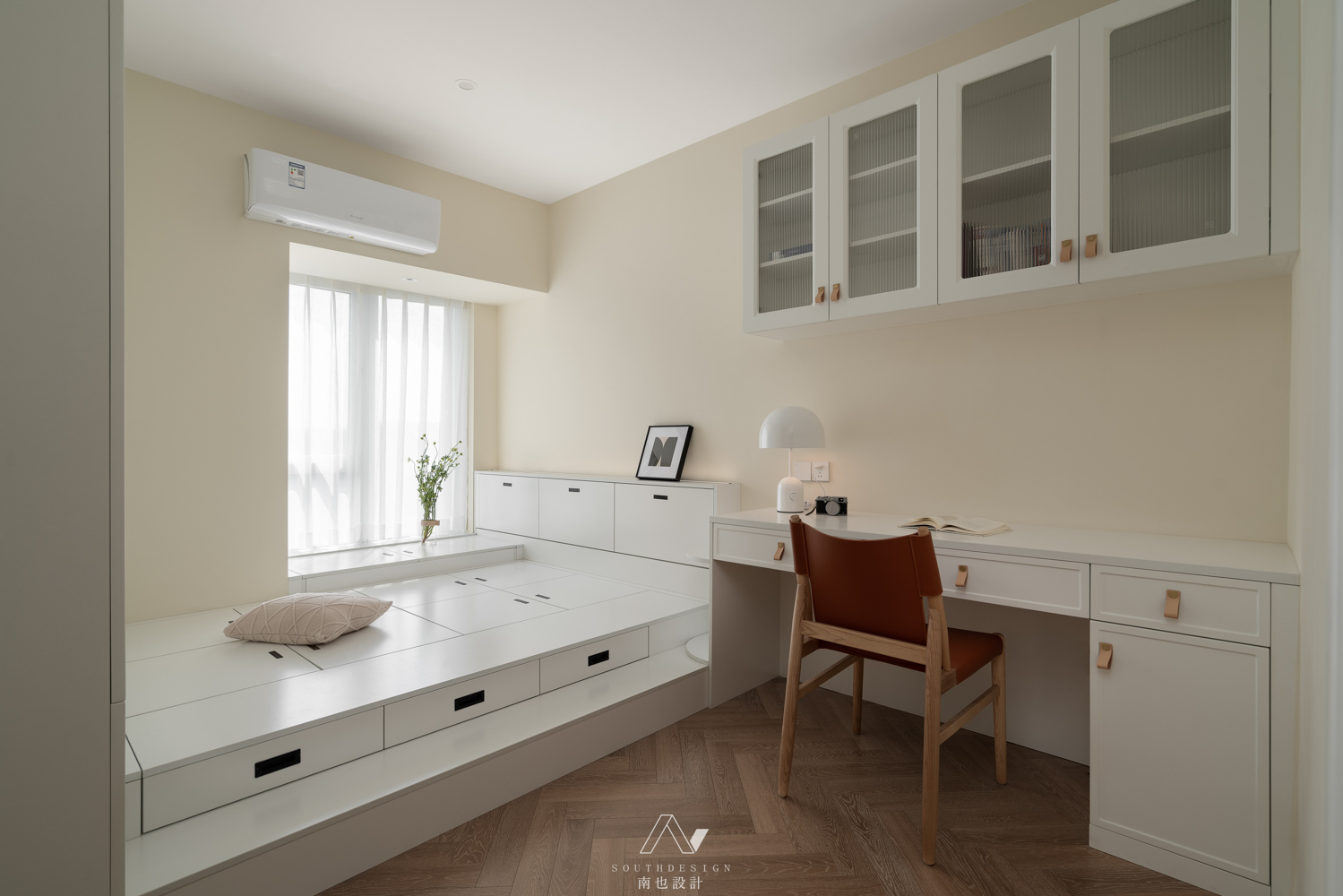 书房,作为办公和学习的空间,同时兼顾了客房的作用。(后来发现屋主喜欢在客厅办公)。温和的色调,让人更轻松和专注。