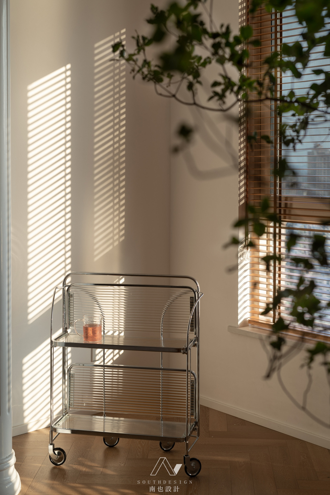 素白的墙面,通过光影变幻,空间富有了更多的层次。